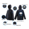 Features: Eco-Friendly, Breathable, Comfortable, Durable, Anti-Pilling, Anti-Static, Waterproof, Lightweight & Packable, High Visibility, Double Entry Front Pockets, Front Zip with Snap Storm Flap, Stowable Hood, Unisex Design